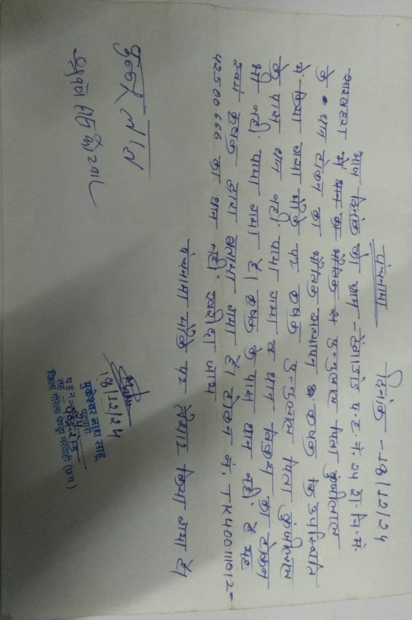 आपको हम बता दे की पटवारी मुकेश्वर साहू की वीडियो पैसे की लेनदेन को लेकर जो वायरल हुई है दरसल यह वायरल विडियो 15 से 20 दिन पुरानी है चुकि कुंवर सिंह राठौर अपने खसरे धान तो बेचता है पर अन्यत्र किसानों का