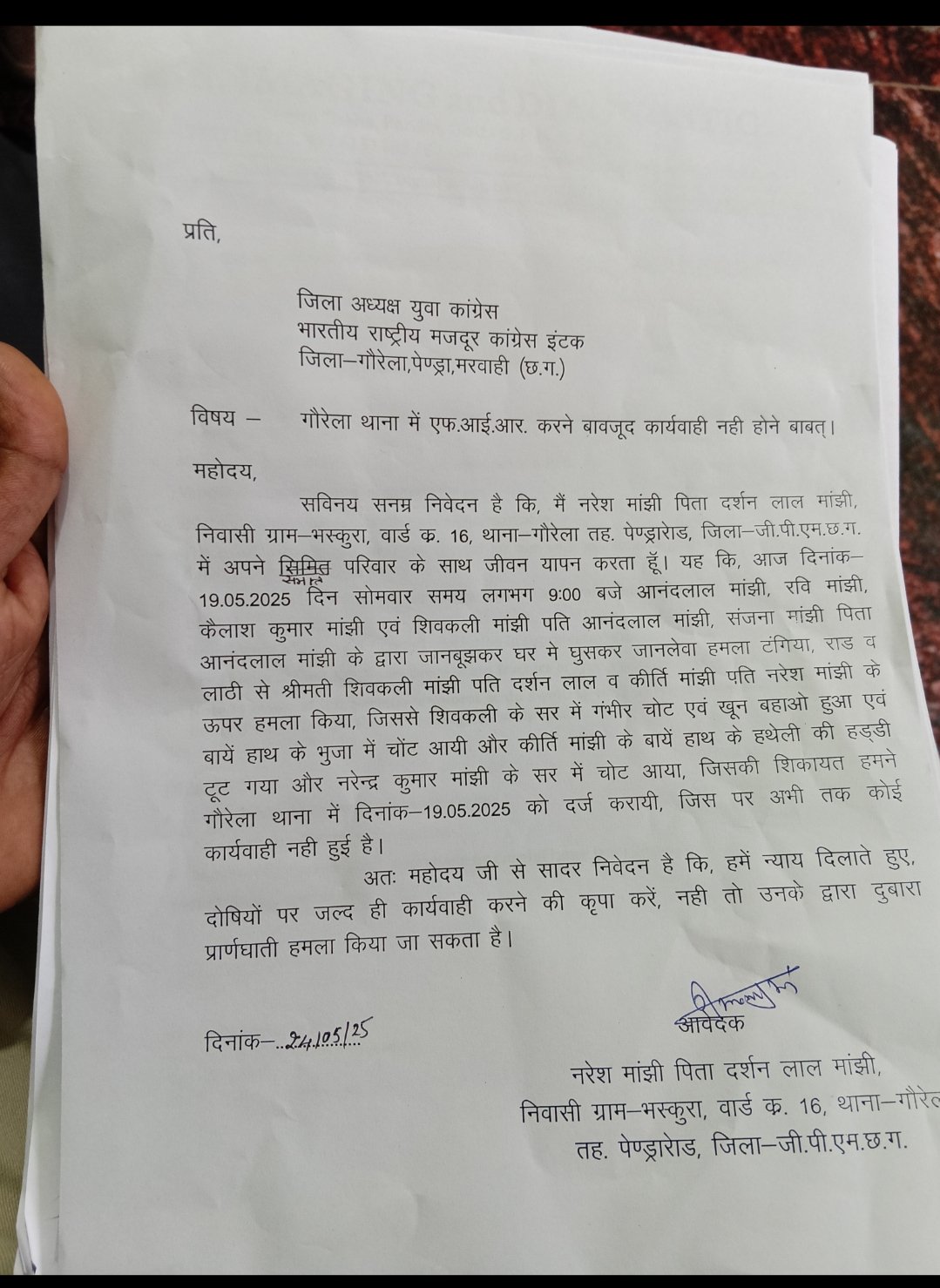 सारी घटना की जानकारी गौरेला थाने में दी गई जहां पर थाना गौरेला में मामूली धाराओं के तहत f i r दर्ज कर मामले को किनारे कर दिया गया ना किसी का बयान लिया गया और ना ही उनकी गिरफ्तारी  की गई