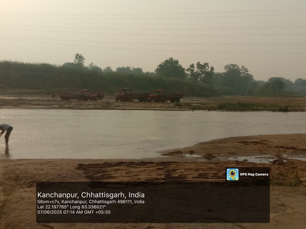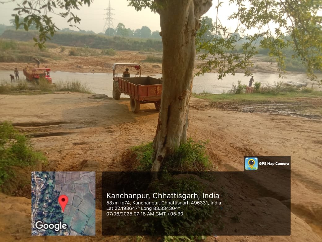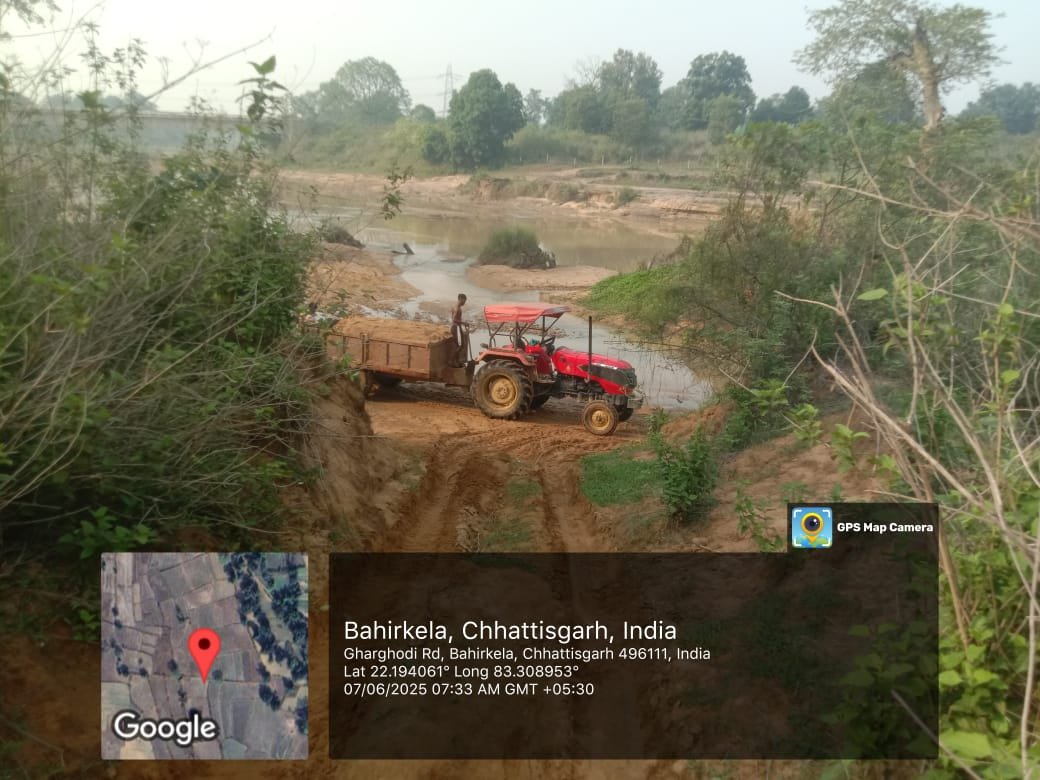 डमरुआ न्यूज़ /रायगढ़/घरघोड़ा। क्षेत्र में रेत तस्करी का खेल अब किसी से छिपा नहीं है। बहिरकेला, बरोनाकुंडा, फगुराम और कंचनपुर जैसे इलाकों में हर सुबह ट्रैक्टर-ट्रॉली से अवैध रूप से रेत का खनन किया जा रहा है। इसका खुला सबूत हमारे पास मौजूद Google GPS लोकेशन सहित ताज़ा तस्वीरों के रूप में है, जिसे कल से सोशल मीडिया में वायरल किया जा रहा है — लेकिन इसके बावजूद पुलिस प्रशासन और खनिज विभाग की आंखें मूंदे हैं।