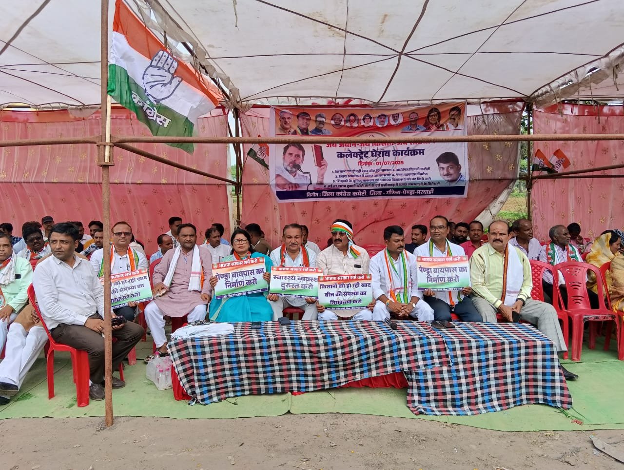 जिसमे क्षेत्र की समस्यों को लेकर कांग्रेस पार्टी ने सेमरा तिराहे में धरना दिया जिसमें कांग्रेसियों ने प्रदेश सरकार पर वादाखिलाफी का आरोप लगाते हुए जमकर हमला बोला वही जिले के पेंड्रा में बायपास सड़क का निर्माण न होने के चलते लगातार हादसे व जिला अस्पताल रेफर सेंटर बनकर रह गया, वहीं किसानों को खाद बीज की पर्याप्त उपलब्धता न होने जैसे कई मुद्दों पर घेरा गया था।।