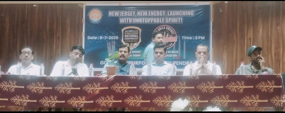 50 बॉल्स क्रिकेट एसोसिएशन ऑफ छत्तीसगढ़ ने 8जुलाई 2025 को गौरेला-पेंड्रा-मरवाही में एक भव्य समारोह का आयोजन किया, जिसमें छत्तीसगढ़ U-19 क्रिकेट टीम की नई जर्सी का लोकार्पण किया गया। इस अवसर पर मुख्य अतिथि के रूप में राजा उपेंद्र बहादुर सिंह (उपाध्यक्ष, जिला पंचायत, गौरेला-पेंड्रा-मरवाही), मुकेश दुबे (अध्यक्ष, नगरपालिका परिषद, गौरेला), राकेश जालान (अध्यक्ष, नगरपालिका परिषद, पेंड्रा), रितेश फरमानिया (बीजेपी जिला कोषाध्यक्ष, गौरेला-पेंड्रा-मरवाही), एल.पी. डाहीरे (प्राचार्य, मल्टीपर्पज स्कूल), और वासुदेव बरेठ (छत्तीसगढ़ रणजी ट्रॉफी खिलाड़ी) उपस्थित रहे। इसके अतिरिक्त, खिलाड़ियों के अभिभावक और स्थानीय खेल प्रेमी भी इस समारोह में शामिल हुए।