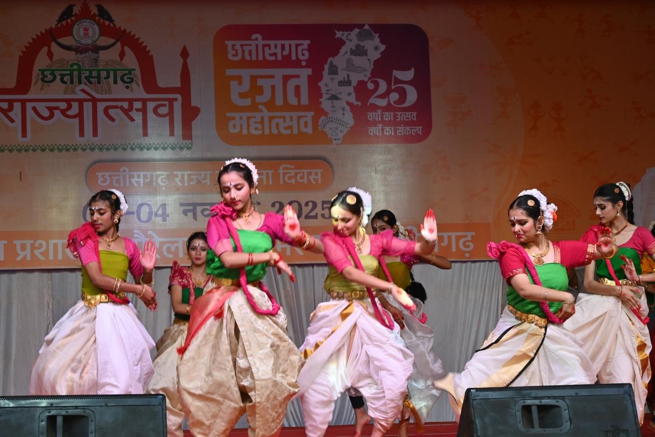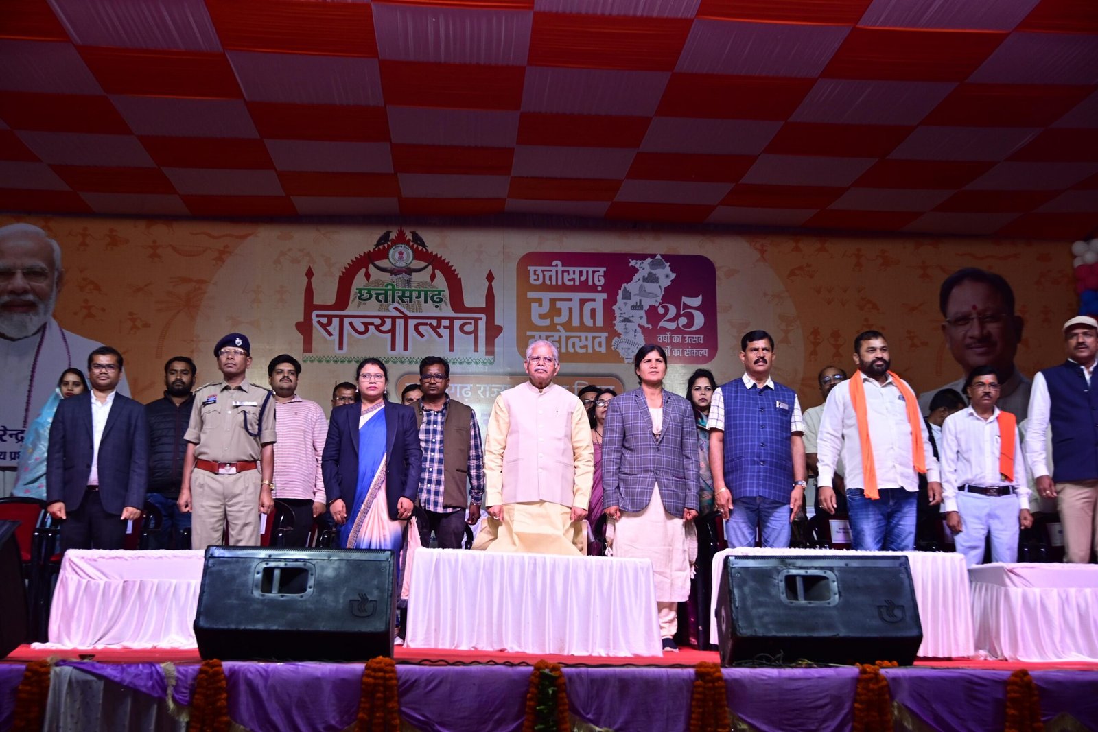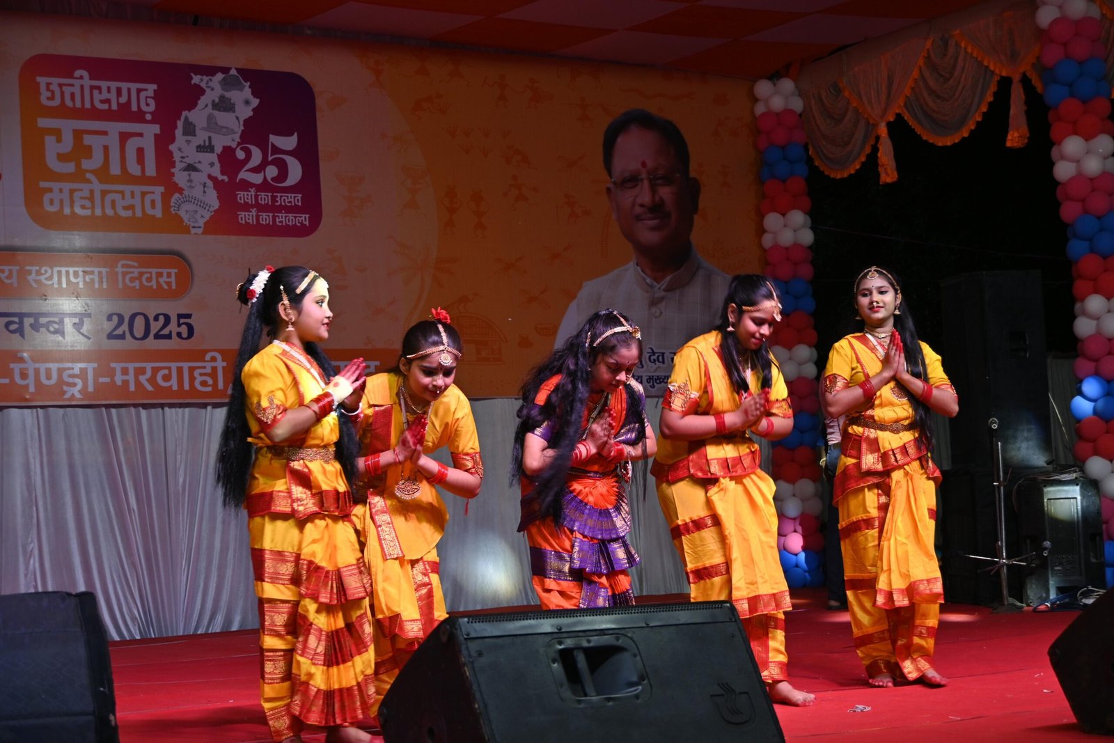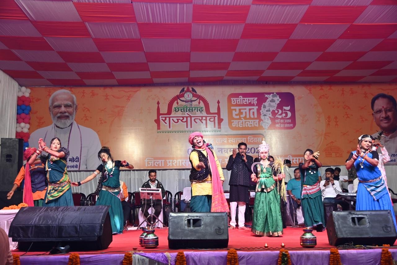 कलेक्टर लीना कमलेश मंडावी ने स्वागत भाषण दिया। उन्होंने कहा कि छत्तीसगढ़ गठन के 25 वर्ष पूर्ण होने पर राज्य सरकार द्वारा रजत जयंती वर्ष मनाया जा रहा है। जीपीएम नया जिला बनने के बाद से यहां विकास कार्यों, संस्कृति और जनकल्याण के क्षेत्र में उल्लेखनीय प्रगति हुआ है। उन्होंने जिला स्तरीय राज्योत्सव में विभिन्न विभागों द्वारा विकास पर आधारित प्रदर्शनी लगाने, बच्चों के मनोरंजन के लिए झूले, फूड स्टॉल आदि लगाए जाने की जानकारी दी। राज्योत्सव के पहले दिन स्कूली छात्र-छात्राओं और लोक कलाकारों द्वारा पारंपरिक वेशभूषा एवं वाद्य यंत्रों के साथ गेंड़ी, सुआ, मोर छत्तीसगढ़ महतारी आदि लोक नृत्य एवं लोक गीत की शानदार प्रस्तुति दी गई। समारोह में प्रसिद्ध लोक गायन संजय सुरीला लोक कला मंच की शानदार प्रस्तुति दी गई।