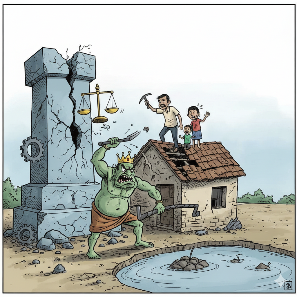 डमरूआ न्यूज़ /रायगढ़. जिले में प्रशासनिक निगरानी और कानून व्यवस्था पर गंभीर सवाल खड़े करते हुए एक लिखित शिकायत ने पूरे सिस्टम को कटघरे में खड़ा कर दिया है। शिकायत में स्पष्ट रूप से गैर-आवेदकों के रूप में कृष्णा सिटी रायगढ़ द्वारा भागीदार अजय अग्रवाल पिता बजरंग लाल अग्रवाल, नवीन कुमार बंसल पिता सुरेश कुमार बंसल, श्रवण अग्रवाल पिता बजरंग अग्रवाल, अंकित बंसल पिता विनोद कुमार बंसल, धर्मप्रकाश डालमिया पिता रामकुमार डालमिया, रायगढ़ प्रॉपर्टीज प्राइवेट लिमिटेड के डायरेक्टर रोहन बंसल पिता जय कुमार बंसल तथा रायगढ़ प्रोजेक्ट्स लिमिटेड के डायरेक्टर अमित मित्तल पिता दशरथ मित्तल के नाम दर्ज हैं। शिकायतकर्ताओं के रूप में ललित मेहता, खुशवंत अग्रवाल और शिवराज यादव के नाम सामने आए हैं। शिकायत के अनुसार शहर स्थित एक सार्वजनिक तालाब में बिना किसी शासकीय अनुमति और बिना सक्षम प्राधिकरण की स्वीकृति के खुलेआम मिट्टी डंप की जा रही है। आरोप है कि यह कार्य निजी लाभ और दबंगई के बल पर किया जा रहा है, जिससे न केवल सार्वजनिक संपत्ति को नुकसान पहुंच रहा है बल्कि पर्यावरण और जनहित पर भी सीधा प्रहार हो रहा है। शिकायतकर्ताओं का कहना है कि तालाब का उपयोग वर्षों से स्थानीय नागरिक सार्वजनिक रूप से करते आ रहे हैं, बावजूद इसके प्रभावशाली लोगों द्वारा इसे मिट्टी से भरकर समाप्त करने का प्रयास किया जा रहा है। सबसे गंभीर आरोप यह है कि इसी अवैध कार्रवाई के दौरान शिकायतकर्ताओं के मकान की छत को भी नुकसान पहुंचाया गया, जिससे भारी आर्थिक और मानसिक क्षति हुई। शिकायत जिला प्रशासन तक पहुंचने के बावजूद आज तक किसी प्रकार की ठोस और प्रभावी कार्रवाई नहीं हुई, जिससे अवैध गतिविधियों को खुला संरक्षण मिलने का संकेत मिल रहा है। प्रशासनिक चुप्पी ने आरोपियों के हौसले और बुलंद कर दिए हैं और शहर में यह संदेश जा रहा है कि सार्वजनिक संपत्ति असुरक्षित है और कानून केवल कागजों तक सीमित रह गया है।